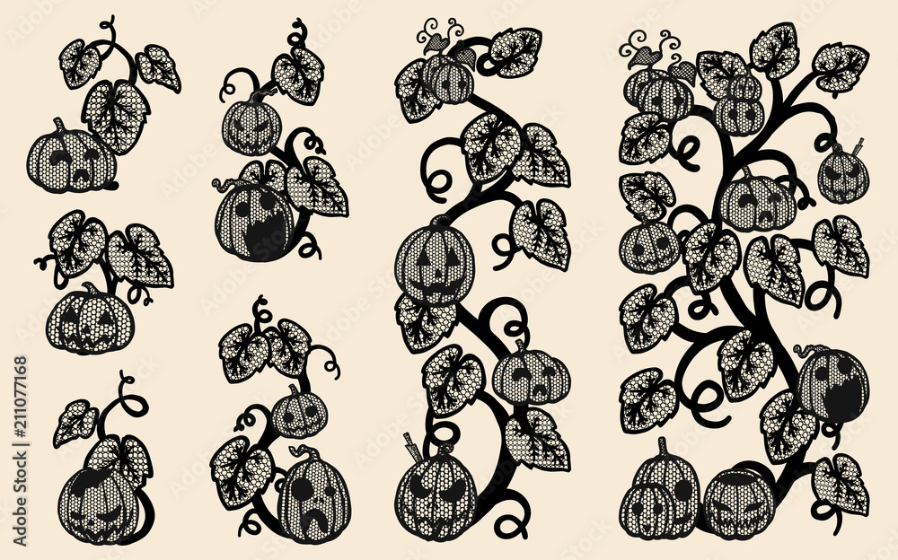 Halloween Pumpkins Vector Lace By Hand Drawing Beautiful Lace On Brown Background Pumpkins Lace Art Highly Detailed In Line Art Style Vine Tattoo On Vintage Paper Stock Vector Adobe Stock
